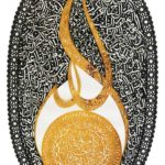 Lower circle, depicting the world. Large calligraphy of Allah is like grabbing the world from two poles (Alif & Hay).