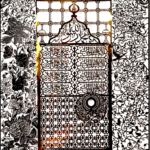 This artwork contains the theme of golden nets (Jali) on the holy shrine of the Prophet (PBUH). In this art piece right above the Jali Mubarak Shahada is written.