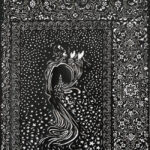 In this artwork, a Sufi is depicted immersed in worship during the night. His chest is shown as a heart-shaped window, within which a candle is lit. Upon closer observation, the wax of the candle is shaped to read “Allah,” symbolizing the spiritual state of the Sufi’s heart.