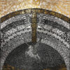 As the eye moves upwards, the seven layers of the heavens are meticulously illustrated, each adorned with distinct and progressively elaborate patterns, signifying their increasing magnificence and divine splendor. These layered arches symbolize the Prophet’s ascent through the different realms of the cosmos.